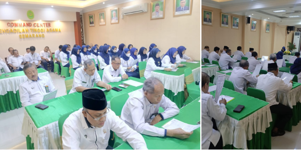 Ketua PTA Semarang, Dr. Hj. Rokhanah, S.H., M.H., pada pagi hari ini, Senin 4 Agustus 2025 menjadi Narasumber yang pertama pada kegiatan Pembinaan Rohani dan Mental pada PTA Semarang yang juga pertama kali dilaksanakan di aula PTA Semarang. Biasanya kegiatan pembinaan rohani dan mental tersebut dilaksanakan setiap hari Rabu sore setelah sholat Ashar bertempat di masjid Tajul ‘Arifin, masjid yang berada di dalam kantor PTA Semarang. Mulai hari ini kegiatan pembinaan rohani dan mental dilaksanakan setelah semua aparatur selesai melaksanakan apel Senin pagi.