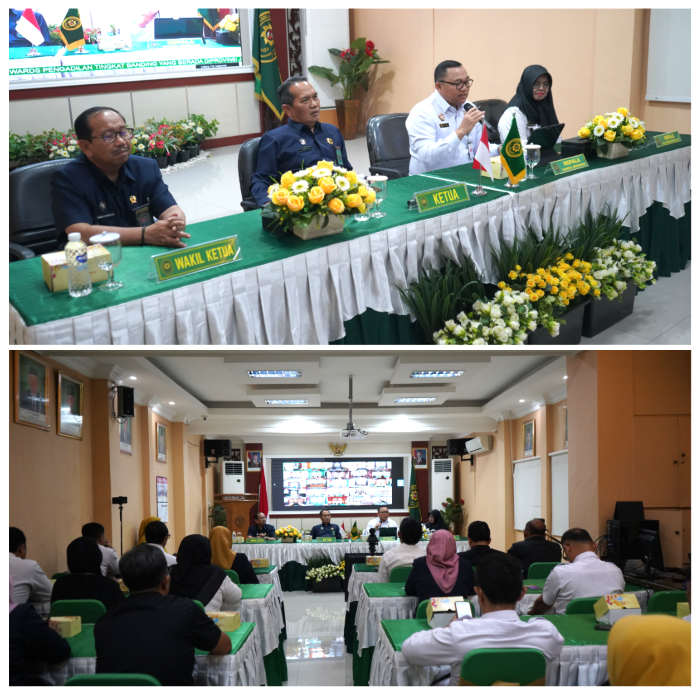 Bertempat di aula PTA Semarang, pada hari ini Rabu, 16 April 2025 dilaksanakan acara Penandatanganan Nota Kesepahaman (MoU) antara Pengadilan Tinggi Agama Semarang dengan Kantor Wilayah Kementerian Hukum Jawa Tengah. Acara yang dihadiri oleh Ketua, Wakil Ketua, Hakim Tinggi, Panitera, Sekretaris, Pejabat Struktural serta Pejabat Fungsional Kepaniteraan PTA Semarang tersebut juga dihadiri Ketua Pengadilan Agama se-wilayah Karesidenan Semarang dan dihadiri secara daring oleh Ketua Pengadilan Agama Se-Jawa Tengah. Nampak hadir rombongan dari Kantor Kementerian Hukum Jawa Tengah Kepala Kanwil Hukum Jawa Tengah Heny Susila Wardaya, S.H., M.H. didampingi oleh Agustina Setiyawati (Kepala Balai Harta Peninggalan), Agustinus Yosi (Kepala Bidang Kekayaan Intelektual BHP Jawa Tengah) dan Bernando Da Cruz (Pejabat Fungsional Kurator Keperdataan Ahli Madya BHP Jawa Tengah).